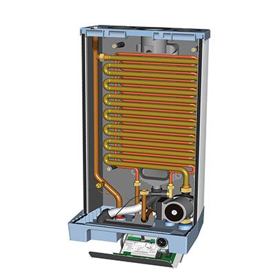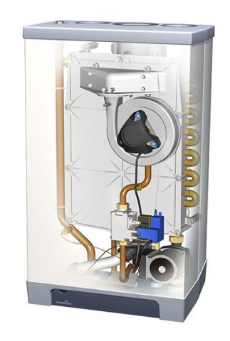 Wie bei den meisten Brennwertkesseln werden hier Baugruppen namhafter Hersteller verbaut.